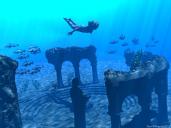 Solid color volumetric cube with a waterplane above and illuminated by a parallel light. G2 female, bikini and hair from DAZ3D. Fish by Toucan, scatter arrayed in Modo. Plants by Lisas Botanicals. Ruined Temple provided with Poser 7. rendered in about 3 hours at Normal AA. Thanks for taking a look!