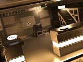Yes, the doors open, the hatch on the 'main wall' goes up and down, and the 'samples' box can be opened. It's also modular so you can make your own layouts - see example below.