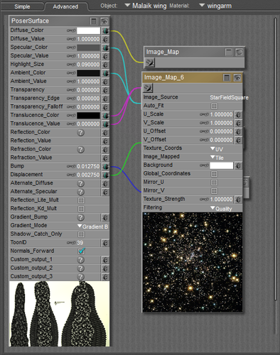 Go the the advanced material room. Select from the drop downs what you want to apply the map to. Right click on and select create new node. Load the bonus 2 star map image into the new node. Wire the new node to the translucency channel.
