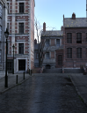 8. If you see a light brown patch in the cobblestone street, it's the Poser ground plane.  Select Display>Guides>Ground Plane to deselect it and remove it from the scene.