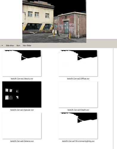 I was expecting regular looking render passes like I'd get from max using render elements, when I render to exr in max I get a layered file that Photoshop displays as I expected(attached image show what the 3dsmax exr gives me)