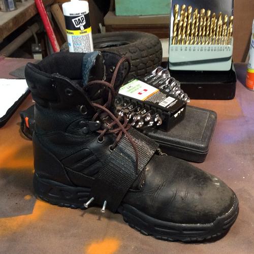 I ca't ever imagine what I'm talking about either... but here is a picture of one of my modified boots... notice the care I took in fastening this hi-tech strap to the boot... I probably shouldn't have been wearing them when I screwed them in and I should have used shorter screws, but hey... now I know.