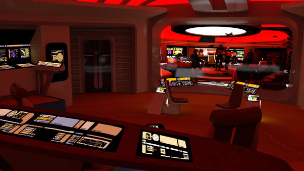 I went through Ptrope's TOS bridge scene and made all the screens, buttons and alerts light emitting surfaces. I also applied leather, rubber, plastic and metallic shaders to the other non-lighting surfaces. The scene file is uploaded there in the gallery, so as long as you have Ptrope's set and the Beta you can use this however you want.