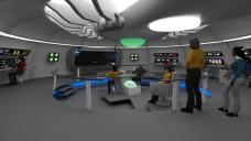 The Phase II version of the bridge is JUST about done. I'm going with about 90% on it. I need to remodel the base console I used around the bridge and the helm console as there are mesh errors in them that are bugging the crap out of me. Need to lift the science station extendables as well. The turbolift's need to be detailed so they're not just hollow cylinders. I haven't settled on a design just yet, but something that will be easy to evolve through the ship lines will be good. Actually considering omitting the full screen in the lifts with the ship design and going for something smaller. Oh, and I did condense some stations to get them all to be sit down. You've actually only got 7 stations on the outer section of the bridge. Starting behind the Captain and going clock-wise you have the First Officer station that can double as any other station on the bridge if needed, Communications, Engineering, SecWeaps (combination of Security and Weapons that will eventually become Tactical but maybe not in my timeline), the viewscreen, Damage and Repair, Environmental, and then Science.