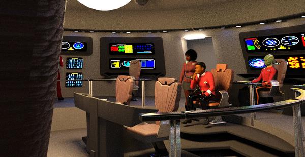 May the Great Bird of the Galaxy shine upon all of you today. It has been a while since I have really done anything Trek related with my artwork and not too long ago I started modifying Rduda's TWOK bridge to see if it could be turned into variant bridges. A few years ago I did one based on the Phase II layout, but lately I started modifiying and kitbashing using some of the parts of Wil Jaspers bridge to make one that was based on the TMP layout. I hope Rduda doesn't mind the mods I made for it. I hope to start a web comic or short using it in the near future