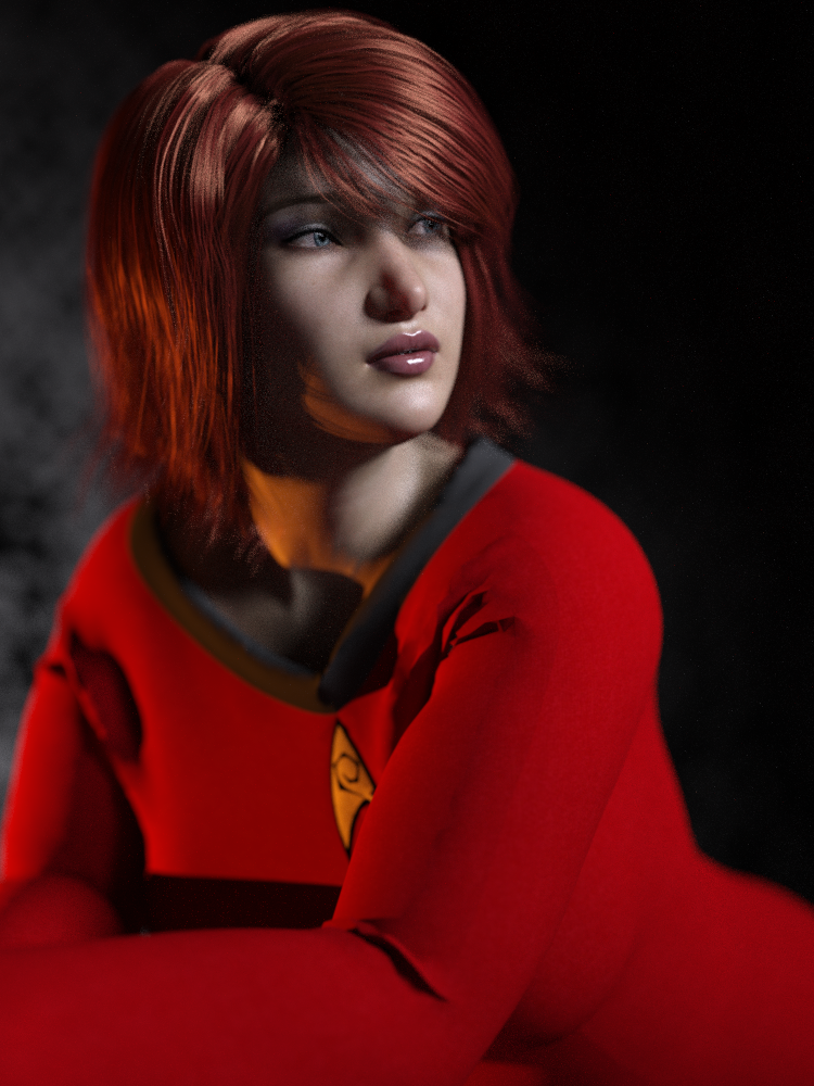 Is that the texture set you made for V4 couragous or a custom clothing item? It looks like the collar has more dimmension and more wrinkles in the sleeves that you'd see with courageous. Great render, bu the way. Understand it's just a couple of lights but the placement is great, really adds depth and a bit of drama to the scene.