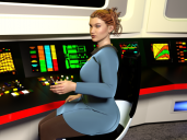 Trying out a new 'old' corridor design. Sometime before the refit in 2270 but after the launch of the Big E in 2245. Also my edit to make my V4 character an Orion. Think I need to tone down the ambient color a bit on her.