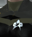 The biggest issue I was having in with Studio's dynamic engine was that no matter how ridgid I set the collar, within 30 - 50 frames it would flatten out then procede to explode into a shower of triangles everywhere. The insignia I have fixed... at least in MD, it is now sewn all the way onto the dress, instead of just being tacked on. Unfortunately that makes it not work well in Studio dynamics.