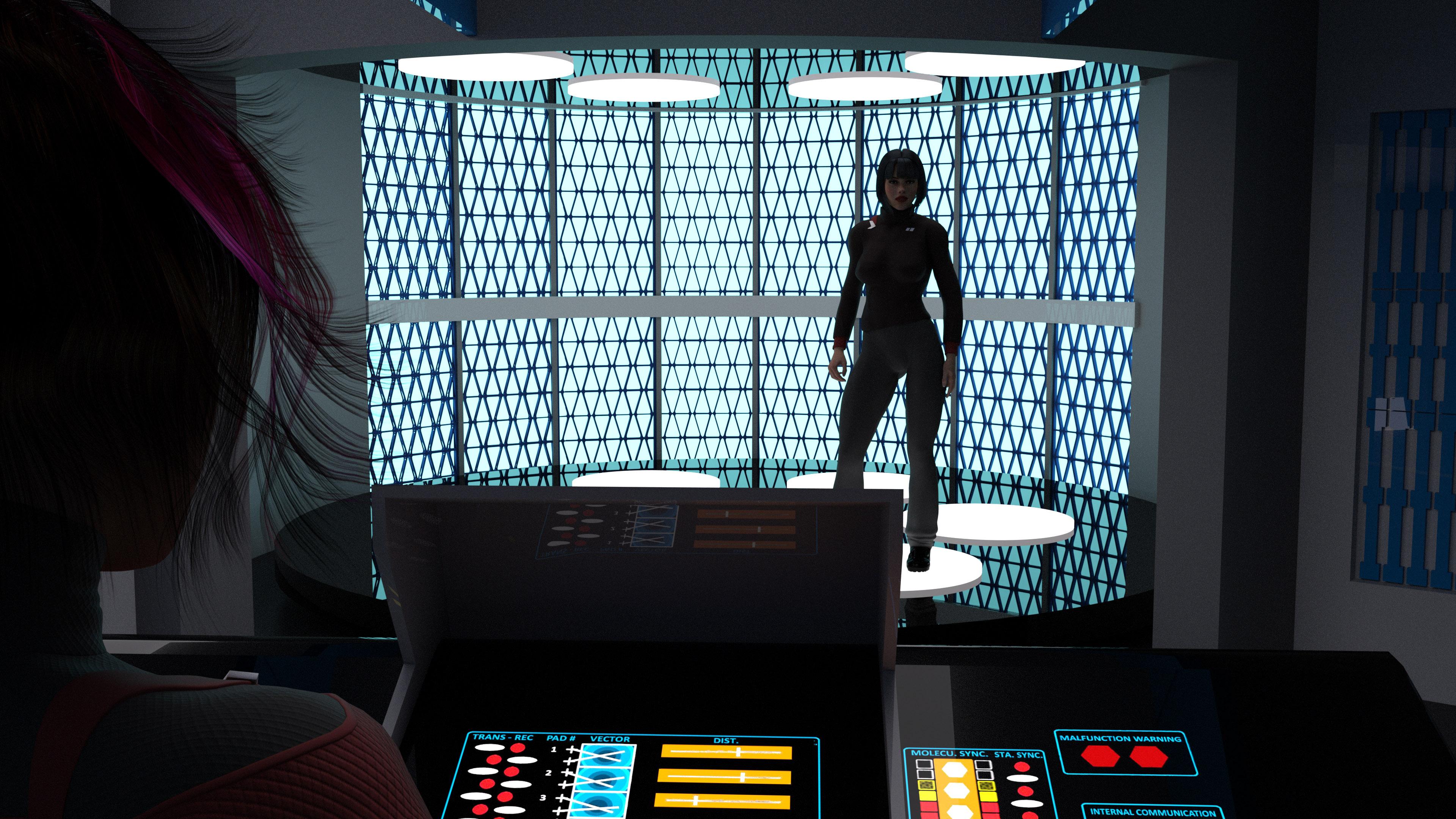 Speaking of, two more renders of the Destoryer Transporter Room. I need to make up some signage for the corridor and maybe the instructions for the tranporter and then she's all done.