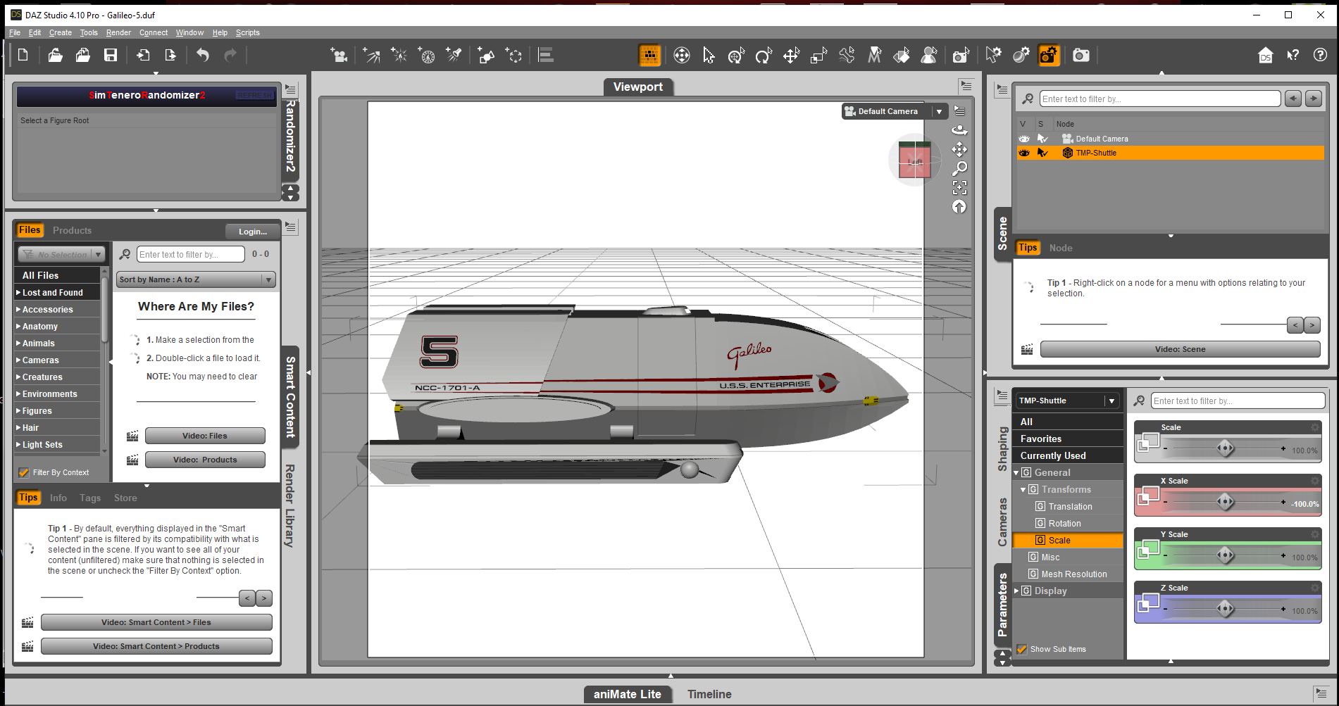 I downloaded a free Star Trek Galileo Shuttle from ShareCG. This is the episode where Spock commands a shuttle expedition to a planet of giant stone age humanoids.