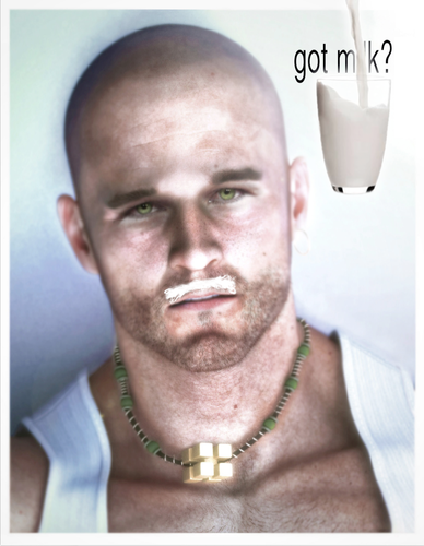 The second one is actually my first attempt at a photo real image. It was part of my portfolio. It looks like a "got milk?" ad so I just added that part an hour ago to see how it looks.