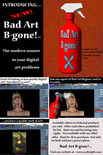 tjohn, great ads, the Tequila is my fav - the glass looks fantastic! Think I'll order in a crate or two of Bad Art B-Gone though, I need it to clear out my renders ;-)
