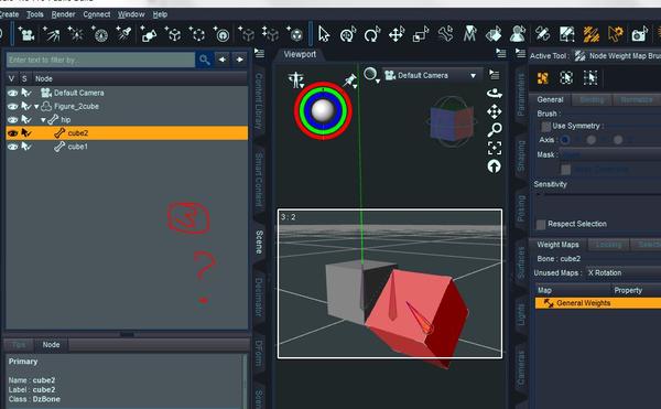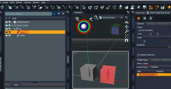 then manually color only "general weight" for cube1, and cube2 assigned each meshes by node weight map brush.