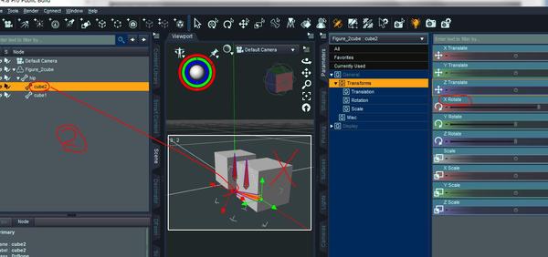 1, generate hip node for two cubes mesh (one obj) as parent node, then add child nodes for cube1, cube2.