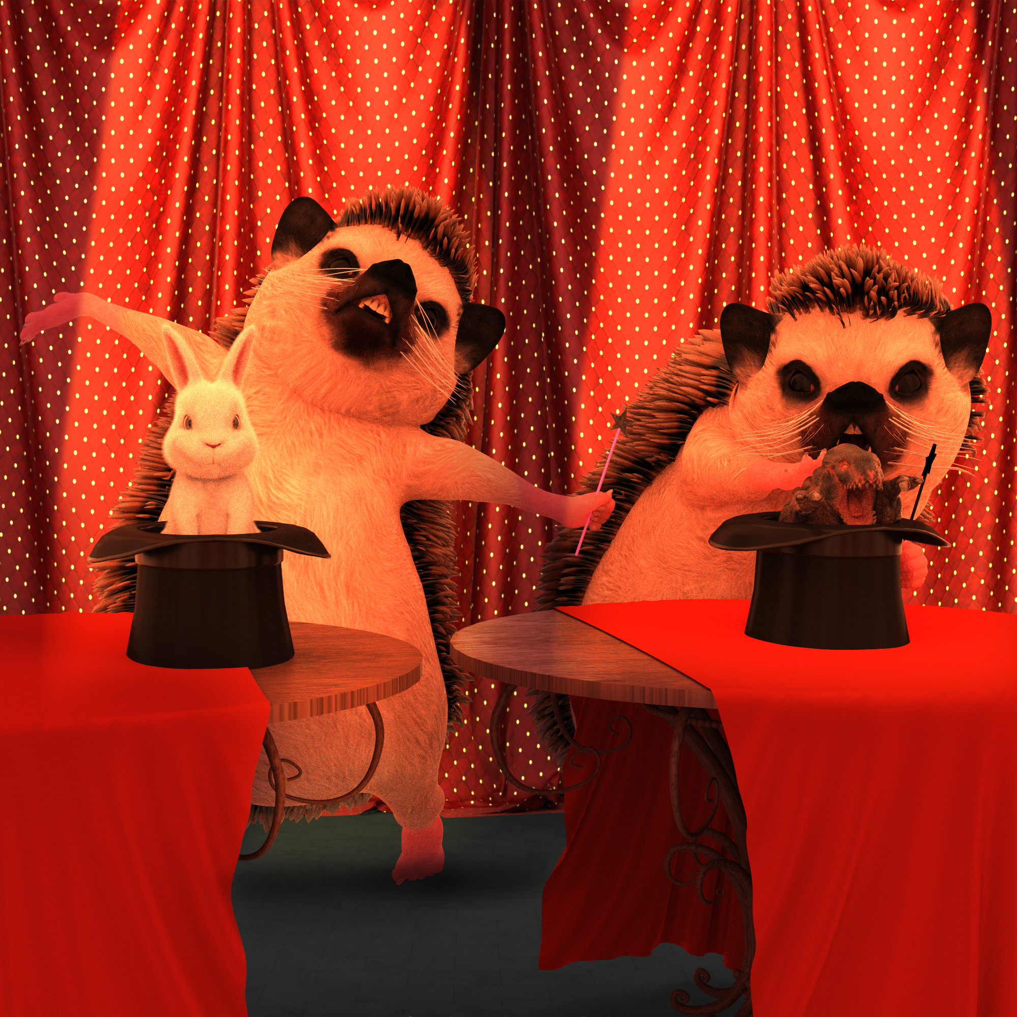 Caption: And now, you will see two bunnies appear...I mean uh, keep your eye on the left hat folks, nothing happening over here!!!