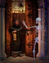 Even later! A second entry: "Midnight Visiter". This started off as trying to copy the pose in the painting, "The Light of the World" and also experinmenting with instancing a row of monks in a corridor. Neither of them worked out, and this was what i ended up doing: nothing like I started off with, but an interesting journey! (DS with postwork in Affinity Photo.)