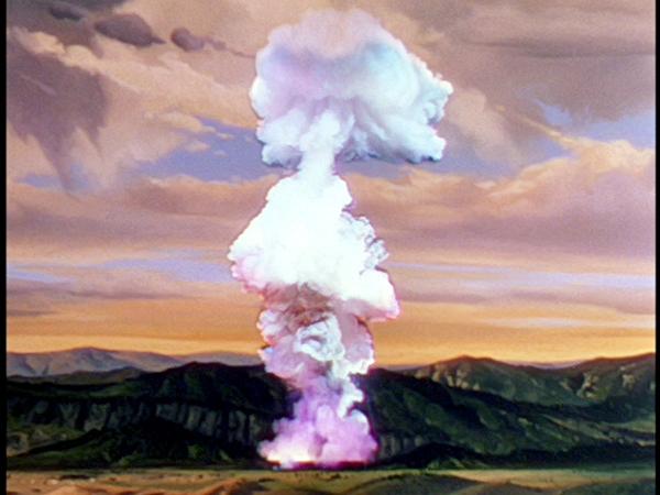 The American altered version of the Japanese film, "Rodan" has an intro using color scenes of atomic blasts in the Pacific Ocean.