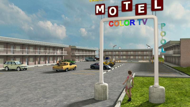 It's always a consideration deciding on the age of a structure.  I figured this motel was built in the 70's and 5-10 years old,  rather than say a 35 year old structure that hasn't seen any upkeep.   there's at least a few delapidated and destroyed motels floating around already,  so I tried to make something more versatile and usable.  If someone needed it,  it can get grunged up fairly quickly with some aged textures.  There are plenty of material zones giving the option.