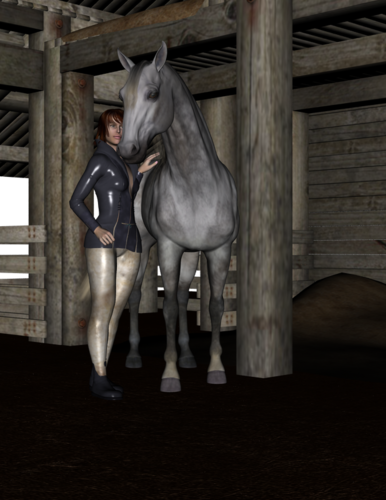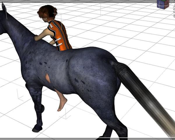 The first picture is my starting point - using one of the horse poses and a teenage character with the rider pose that belongs to the horse pose.