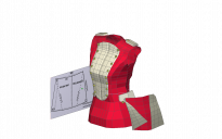 You want the mesh under the centre shield deleted, then select some points along each side [one side at a time] and with soft selection set to a small value, move the mesh over to make the flaps.