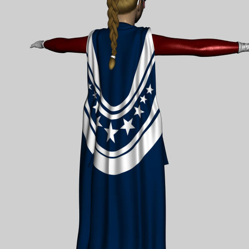 I am working on a superhero webcomic, and the star has a costume based largely on a costume I made for her in City of Heroes years ago. This includes a cape with stars and stripes on it (she is a patriotic character). I am using the Supercape for Genesis on the character (she is G2F but it works OK on her). Now, the cape comes with its own textures, but I don't want to use those... I wanted to make my own.