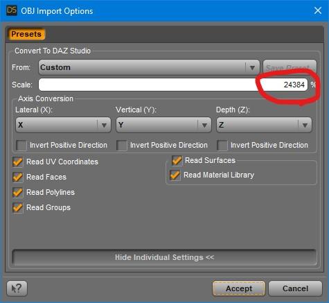 It is quite possible that I don't understand the recent changes to Update Base Geometry, but when I update from a DS exported OBJ, it always opens with a bizarre custom percentage. I am running DS 4.20.1.91 Public Build.