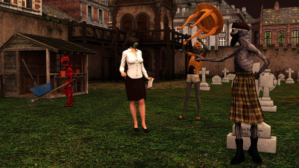 In the dark void of Dilly Donka's Mannequin Factory, the emotional portal selector became stuck on Fear. So the Portal Repairman (oompah loompah) hovered in to fix the machine.