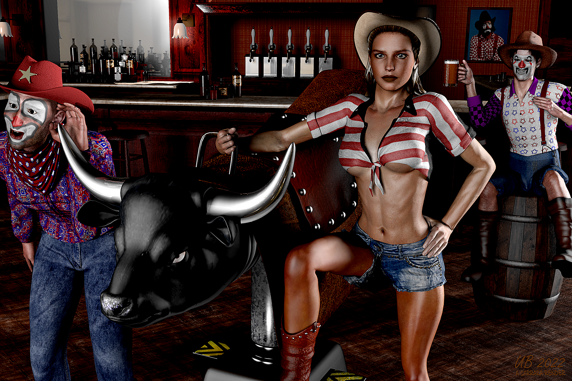 The mechanical bull is a kitbash between Yeehaw and the Daz Bull, and my own additions.