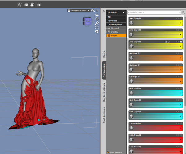 Each sheet goes with a specific figure pose supplied with the product. Pose 1 goes with Sheet 1, Pose 2 with Sheet 2, etc... You would activate the morph slider on the sheet that matches the specific character described in the sheet's morph name. Each sheet has different draping options for each matching pose.