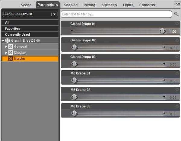 I see different morphs, but nothing related to the drape...