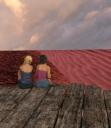 Thank you, Carrie and SapphireBlue. I think the difference between the "magic realism" and surrealism, is that one may be memory of some incidents in the past, curiously mixed with a perception of oddness which is real; while the other is more dreamlike, more subconcious content. That's all I know. I tried reading some articles, mostly tedious going. I just want to create. Here's a very old render I did in Bryce, which has a kind of "magical moment" of two sisters telling each other a story. The word sketch I did here of the field was to visualize that memory of a camping trip my friend's dad took us on. I think it will do well in DAZ, as the "photo realism" and my attempt or style hopefully blend together.
