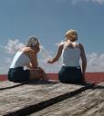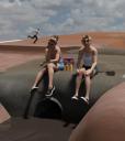 I ususally try out a "sketch". The main subjects will be the two friends which might be viewed from their back. This is a test render so it has flaws.I usually render in .png format, so the background defaults to black when I save in .jpg. When I find a field I like in my library, I will use HDRI background for the kind of intense sunlight.