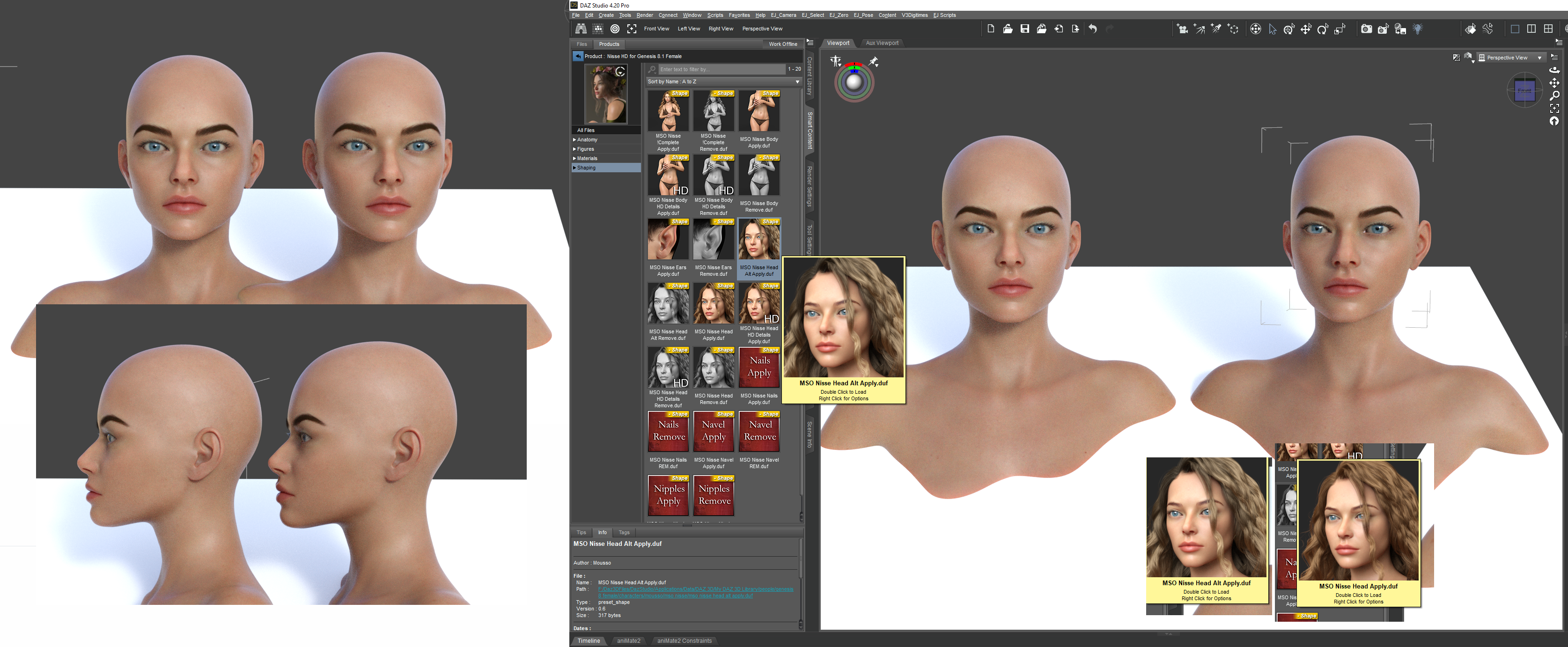 Hi all, could someone who bought her maybe post a side-by-side render of Nisse's (https://www.daz3d.com/nisse-hd-for-genesis-81-female) two different face morphs? I can't really find all that much difference from the promos. Thanks very much, cheers!