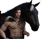 Only a partial render because of the textures. I know I gotta fix hero's eyes too. The horse's fur and the armor texture mats are the ones I created for my Breaking the Siege entry that one the May newbie contest. But those are set for 3Delight - so I gotta fix them for iray. I experimented with the face armor so you can see the in progress results with that. This did result in me discovering why my metal glossy iray shaders were suddenly turning all black. They do that when I turn of the environment or go Scene Only. No matter how I light them with primitives - they aren't going to reflect unless I have the environment on and the intensity turned up to around .30 - .50 at least. That of course ruins my primitive lighting. Surely, there's got to be a work around for that. Anyone know what it is? Anyway, I need to completely redo the horse fur and armor textures - I enjoy doing stuff like that, I just don't know if I'll have the time. But as a side note the more I worked with them today, the more I'd really like to eventually consider doing "official textures" for said horse and armor. I don't know for sure but I think I might have potential (key word there) in that regard. I know the horse is DAZ's so if I do get to that point I would start by asking someone at DAZ if it's okay. But I definitely want some jaw dropping renders to show them at the same time. Knowing my luck, by the time I get up to speed, they'll have oodles of textures for said beastie. But that's neither here nor there right now.