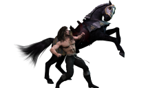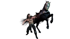 Yes, the horse cavorting around doesn't look like a war horse getting all snarky but a circus pony performing. Part of it is getting Talon's weight and balance just right. I'm going to draw him holding the reins in post - I can't stand the reins that come with the package. But I've been using photos of tug-of-war competitions to try to get the right shift in balance and weight - not to mention the leg positions. The horse is easy for the most part. There are a couple of little tweaks I need to make - mostly because in several important aspects, while he's very nice and one of the better horse's ive seen in 3D, he doesn't move exactly like a real horse. But it's no big deal. The most difficult is getting Talon right.