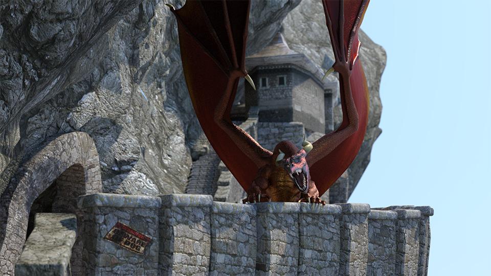 So sorry! I added the Beware of Dog sign on the castle wall. My idea was to have him coming over it to attack. As I started to set him up, I realized he looked like a big ole guard dog being all ferocious and trying to come over the fence. Of course, this one can breathe fire . . . but hey, he's still a big German Shepherd. lol!