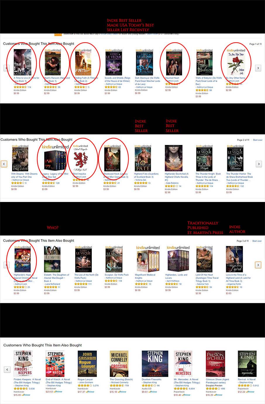 Of all the authors only one is a traditionally published author. But you can see the styles that are selling in the genre now. We honestly can't compare to King which I put at the bottom.