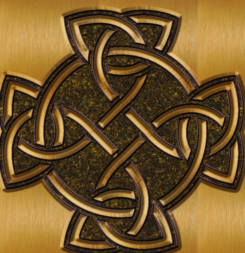 The kilt also has a brooch or cloak pin. I just happen to have a ton of Celtic vector art and images from the Book of Kells that I turned into transparent images for times just like this. The metal celtic cross began as black and white vector art.
