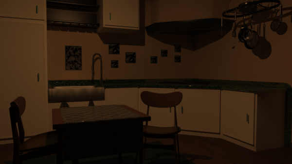 Her are a couple of quick renders using a single 100W bulb above the table. The first without IES the second with.