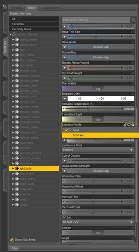 So back to the image bellow, the one marked default is DZFires 100W bulb at its default settings. In the rest of the images the only change that was made is a different ies profile in the Emission Profile channel.