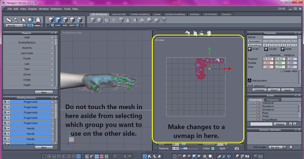 I am sending the model from DAZ 4.8 to Hexagon, and I dissolved some faces.