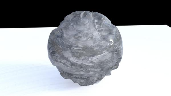 the 128x128 sphere, transformed into an asteroid, using a simple "Perlin noise" image