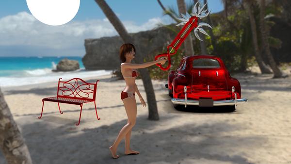 Fig 2 Amy and Julia (the keyblade) at the beach, but Julia's blades don't look sharp enough and she's usually cuter than that