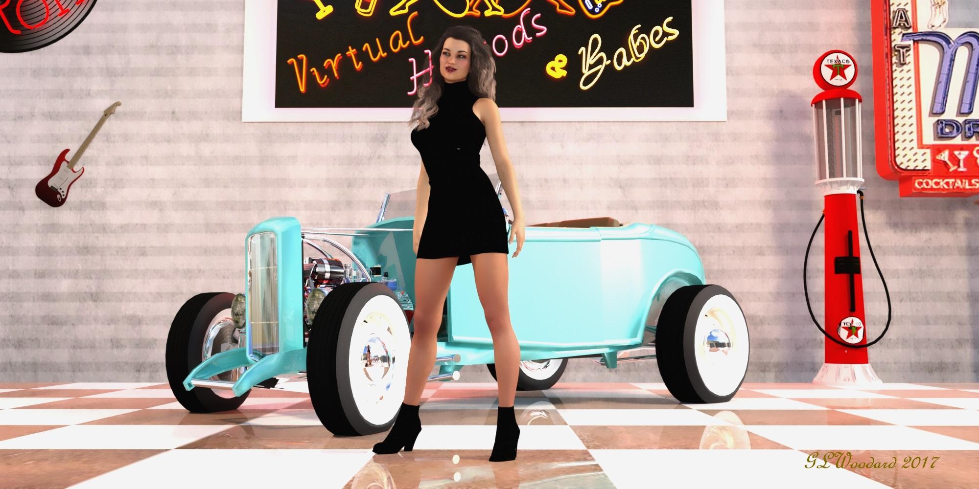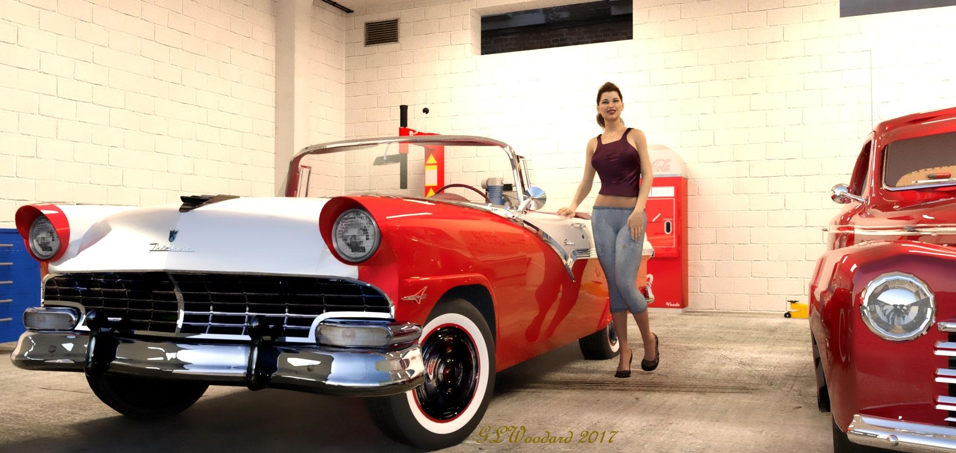 That car is available at DAZ, its the 1932 AM Roadster, I pulled the original obj into blender,  removed the fenders, the hood, and then took and put the V8 into it after removing the original engine, the V8 is also available at DAZ and will require some modifications in order to put it into the roadster, then I used tires and wheels from Nationale7, (now 3D Classics) over at Rendo, once I created the prop in Poser7, I then used tom2099's shaders for Iray as well as the appropriate texture files that came with both the car and the wheel and tire pack, for Nationale7's tire textures to work well in Iray, one needs to set the glossiness to about 50%, otherwise you get real shiny tires!