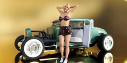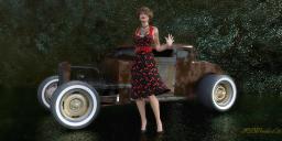 And here is another one, the 29 Model A Ford coupe, originally made stock and is available at the 3D Warehouse, is really a very nice model to work with, a good detailed mesh to start with, and the car can look great in various scenes, especially in renders depicting depression era scenes, the car can be made into a really nice hotrod as well, I put in a Flathead V8, (also available at the Warehouse), and again, used Nationale7's wheels, the car was completed in this render with Tom2099's fantastic car shaders, and the car makes a very convincing Model A Hotrod!