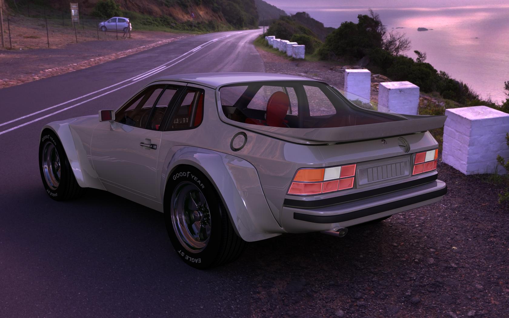 its a Porsche 924, set up for racing- fender flares and second gas tank (or so the model description says)