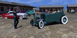 The younger guy is trying to buy the Model A truck sitting by the shed!