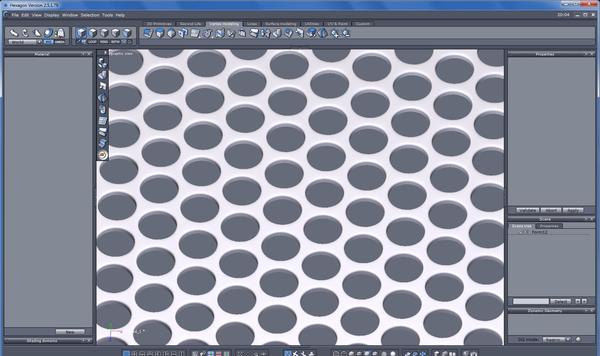 I did it different than most would have because I knew I would be rendering in Carrara and it is real good at smoothing. The holes are actually hexagons, NO PUN INTENDED.