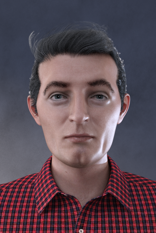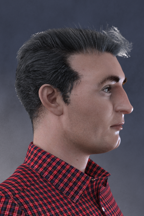@nonesuch00 - yes, the DAZ base models' heads aren't very realistic. It's always kind of irritating to reshape them, so the proportions are more accurate. In Mitchum's case, his eyebrows are so high on his forehead that the part of the forehead above them seems relatively short.