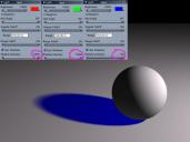 Here is a sphere and for the RGB_Light_GROUP I nudged the Red light and the Blue light similar to the first configuration in the previous picture. With a little bit of Soft Shadows enabled it gives a nice glowing effect., even if not physically real. smiley
